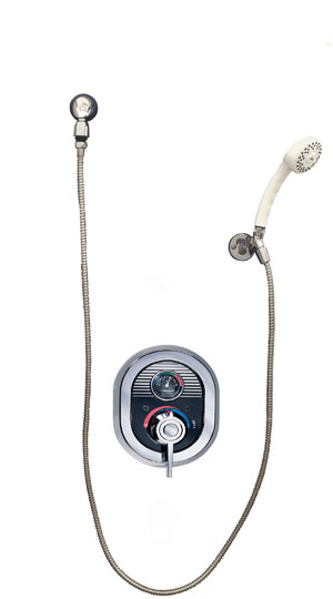 The Advantage® 6700-F valve, 500P hand shower (2.0 GPM) 69" hose, double check valve backflow preventer