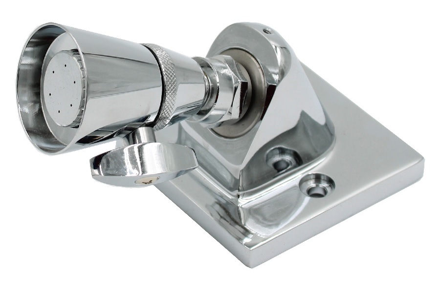 H-08 · Brass construction · Ball joint · Lever adjustable spray · Vandal resistant screws · 2.5 GPM (9.5 l/m) max. flow rate