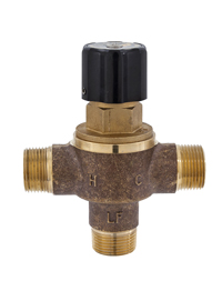 Lead Free Bronze body, Locked temperature adjustment cap (vandal resistant), Copper encapsulated thermostat assembly, with polymer thermoplastic shuttle, Stainless steel springs, Buna-N: O-rings, Integral check valves on hot and cold inlets