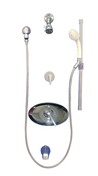 7600 valve, D diverter spout, D-2L inline diverter with lever handle, H-02 shower head, arm and flange, 501P(G) hand shower, double check valve backflow preventer