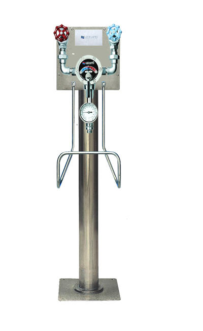 · Two stop and check valves with color coded heat resistant handles on inlets, (internal parts of stainless steel construction)