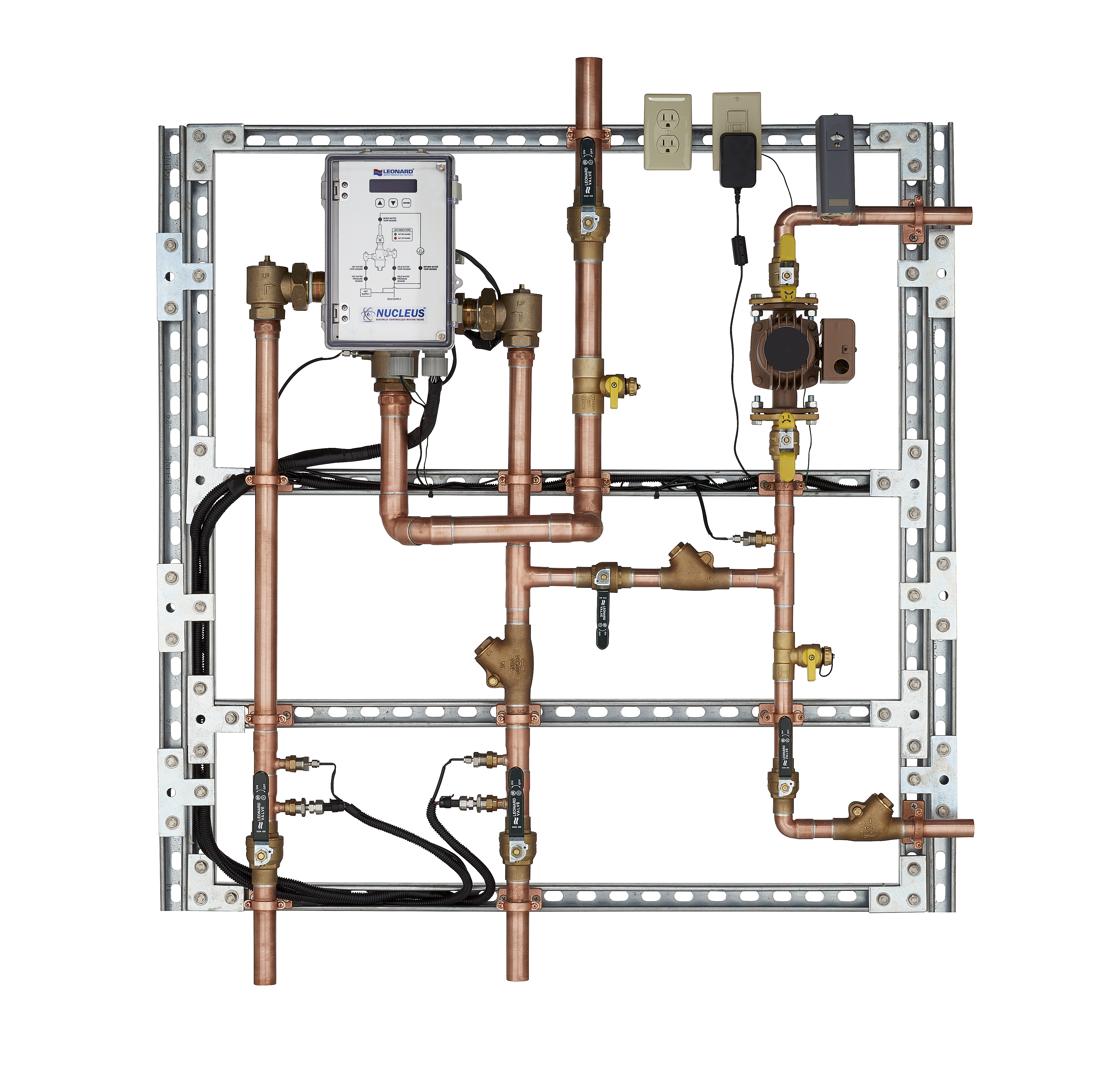 Leonard’s Nucleus models give plumbing engineers complete system monitoring with outlet temperature control within +/- 2F from set point, regardless of demand. Features include user programmable set point, integral daily sweep and sanitization.